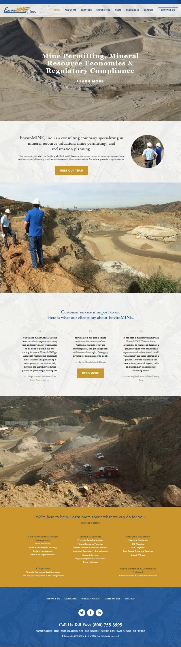 The EnviroMINEinc.com website displayed on a desktop, tablet